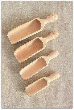 Massive Holzschaufel aus einem Stück Buche gedrechselt. Das Holz ist unbehandelt. Material: Buchenholz Maße: 18 x 5,4 cm Fassungsvermögen ca. für 85 g Getreide, Nüsse, Grieß, Mehl o.ä. geeignet.
