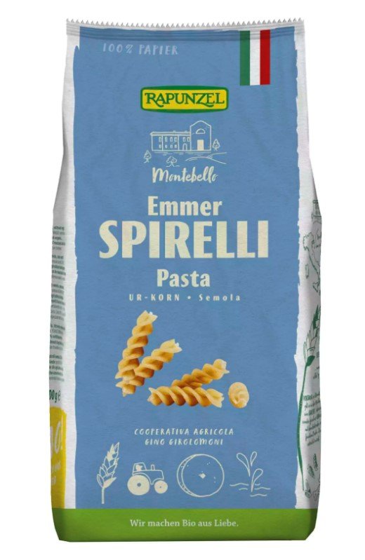 Nudel in Spiralform - eine der beliebtesten Sorten der italienischen Küche. Pasta - in reiner Emmerqualität mit fein nussigem Geschmack. Das Ur-Korn ist ideal für die Herstellung bester Pasta! Sein festes Korn gibt der Nudel den perfekten al dente-Biss und ein ausgezeichnetes, leicht nussiges Aroma.
