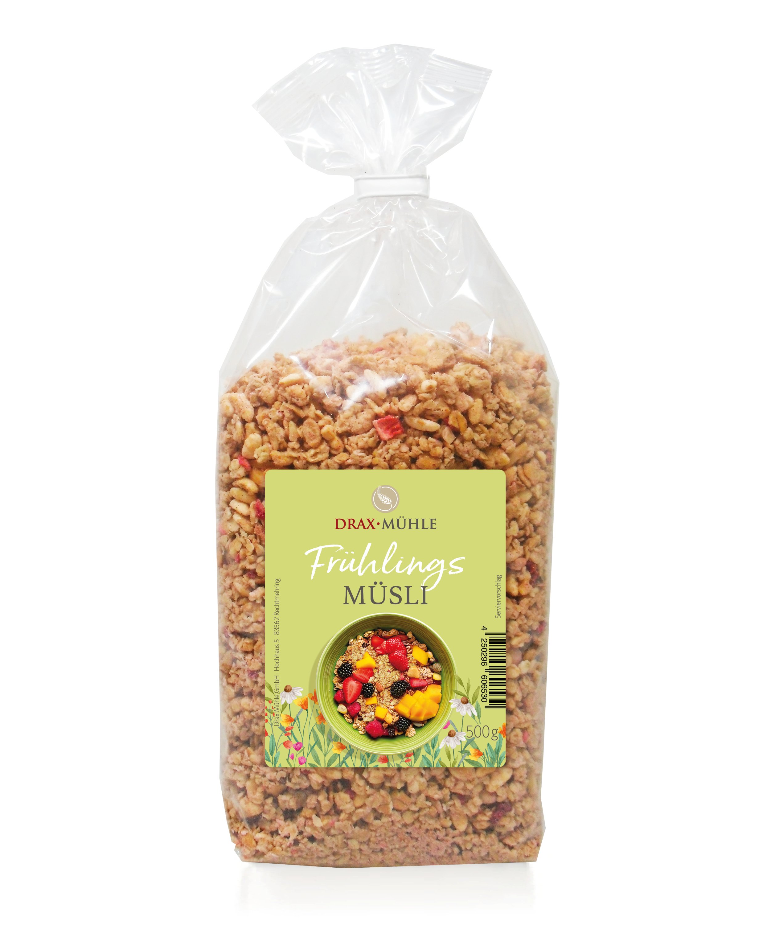 HAFERFLOCKEN, Sultaninen (Sultaninen, Sonnenblumenöl), WEIZENFLOCKEN, ROGGENFLOCKEN, GERSTENFLOCKEN, Cornflakes (Mais, Zucker, Salz, GERSTENMALZEXTRAKT), Getreideextrudat herzformig (WEIZENMEHL, Reismehl, Reissirup, färbendes Lebensmittel (Konzentrat aus Rettich, Apfel, schwarze Johannisbeere), Meersalz), Rote Bete Saftkonzentrat (Rote Beete Saftkonzentrat, Säuerungsmittel: Zitronensäure), Sonnenblumenkerne, GERSTENFLAKES, Leinsamen, Himbeerstücke gefriergetrocknet, Brombeeren gefriergetrocknet, rote Johannisbeeren gefriergetrocket, Amaranth gepufft, SESAM, Kürbiskerne.