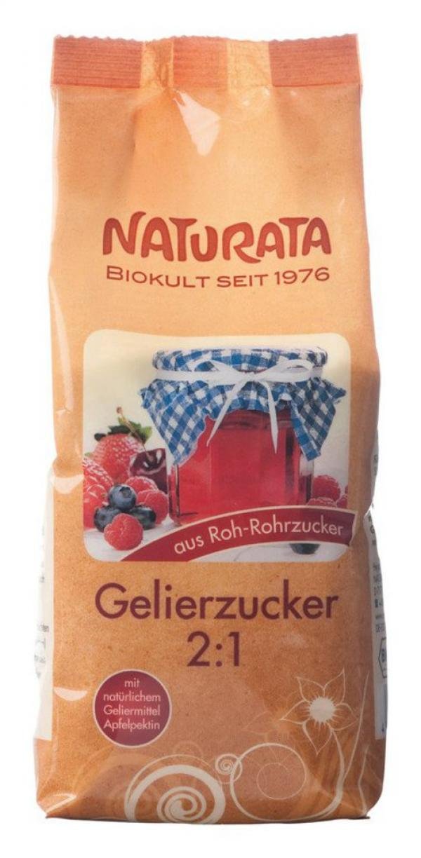 Naturata Gelierzucker 2:1 aus Rohrzucker und reinem Apfelpektin, ohne Konservierungsstoffe, ohne Zitronensäure. Ausreichend für 1 kg Früchte.