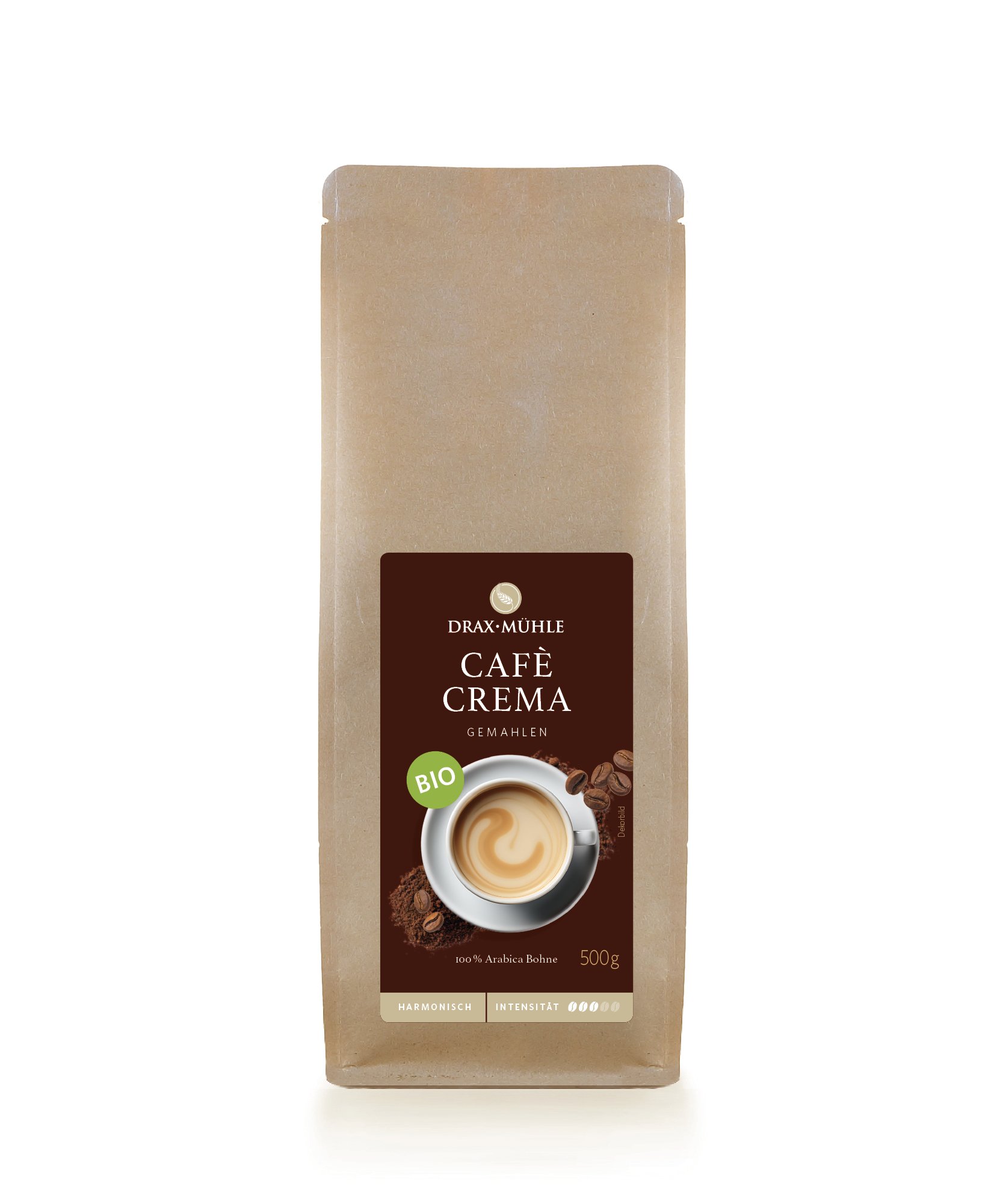 Unser frisch gemahlener Bio-Cafe-Crema eignet sich besonders gut für klassischen Filteraufguss und French Press Zubereitung. Delikat auch für Kaffee-Milch-Getränke wie Cappuccino und Cafe Latte.