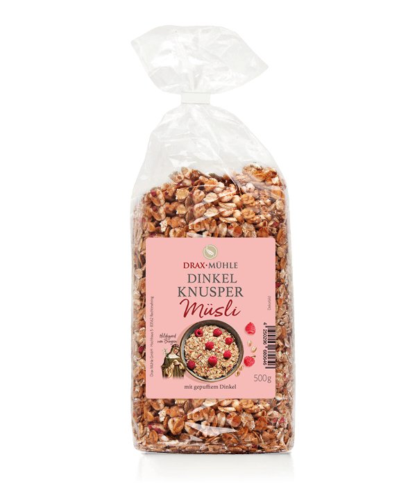 Müsli mit 100% Dinkel im Getreideanteil, teils geröstet.